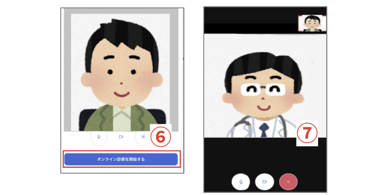 ⑥ [オンライン診察を開始する] 青いボタンを押す